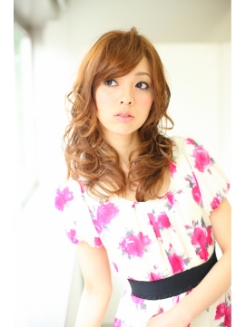 重ね合わせたウェーブで、重く見えすぎないように量感を調節しながら、透明感もGET!全体にツヤを出す事でゴージャス感をUP!