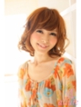抜け感抜群の夏らしいモテスタイル!!肩下のボブベースに軽さをプラスし、1回転半のパーマを施術。夏らしいオレンジベージュをメイクしさらに抜け感アップ!!